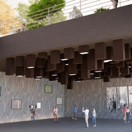 지하층 뮤지엄은 지상층 보행자의 시선과 교차하도록 함으로써 해당 뮤지엄에 대한 흥미와 접근성을 높인다. 천정에 달린 메모리얼 스톤의 중압적이고 정적인 느낌과 상층부의 동적인 실내 정원의 대비를 통해 각