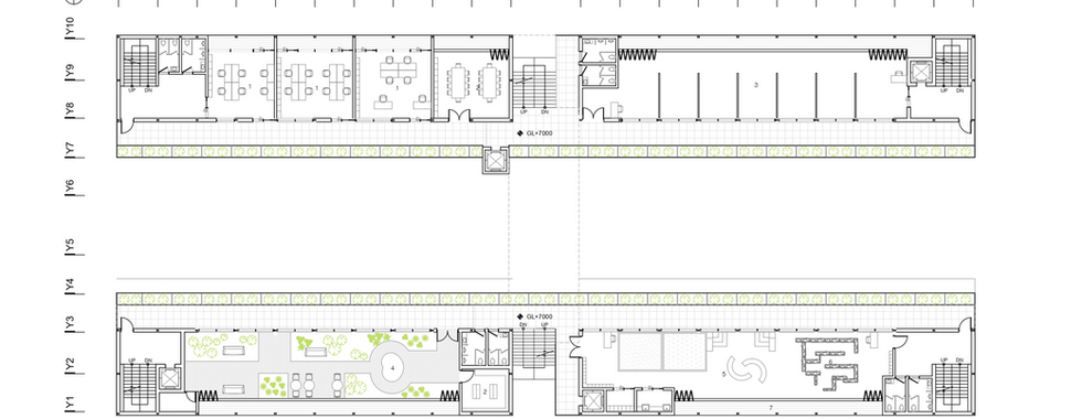 기존의 건물에서 보이드로 비워낸 '선형 광장'을 만든다. 중앙집중형 광장보다 접촉면적이 넓어 사용성이 높으며, 소비 성향이 강한 기존의 상업 프로그램으로 이루어진 저층부에는 이 광장이 적극 사용되도록 사잇길을 추가한다. 또한 증축을 통해 다양한 공공 프로그램을 넣어, 보이드로 인한 부족한 밀도를 다시 채워준다.