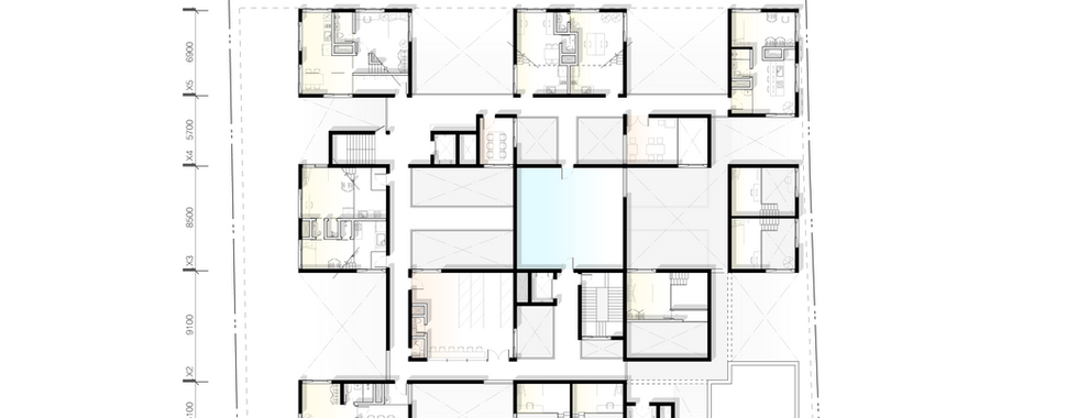 25채가 모여 큰 한채를 이루는 패치워크가 가지는 텍토닉은 주거를 서포트하는 프로그램인 하부의 soc가 가지는 의미 그 자체를 구축성에 내포시켜 서동의 그리드를 기준으로 주거를 떠받쳐주는 역할을 하고, 상부의 주거는 하부의 soc에 실내공간을 제공해주는 상호호혜적 역할을 한다.